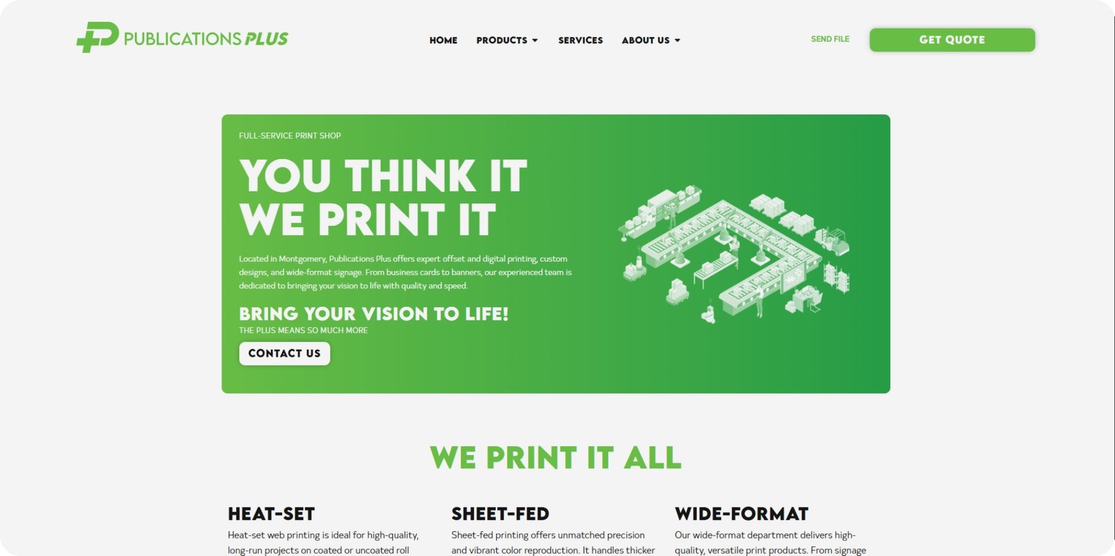 This website allows customers of Publications Plus to easily browse services, submit print files, and stay up to date with new offerings.