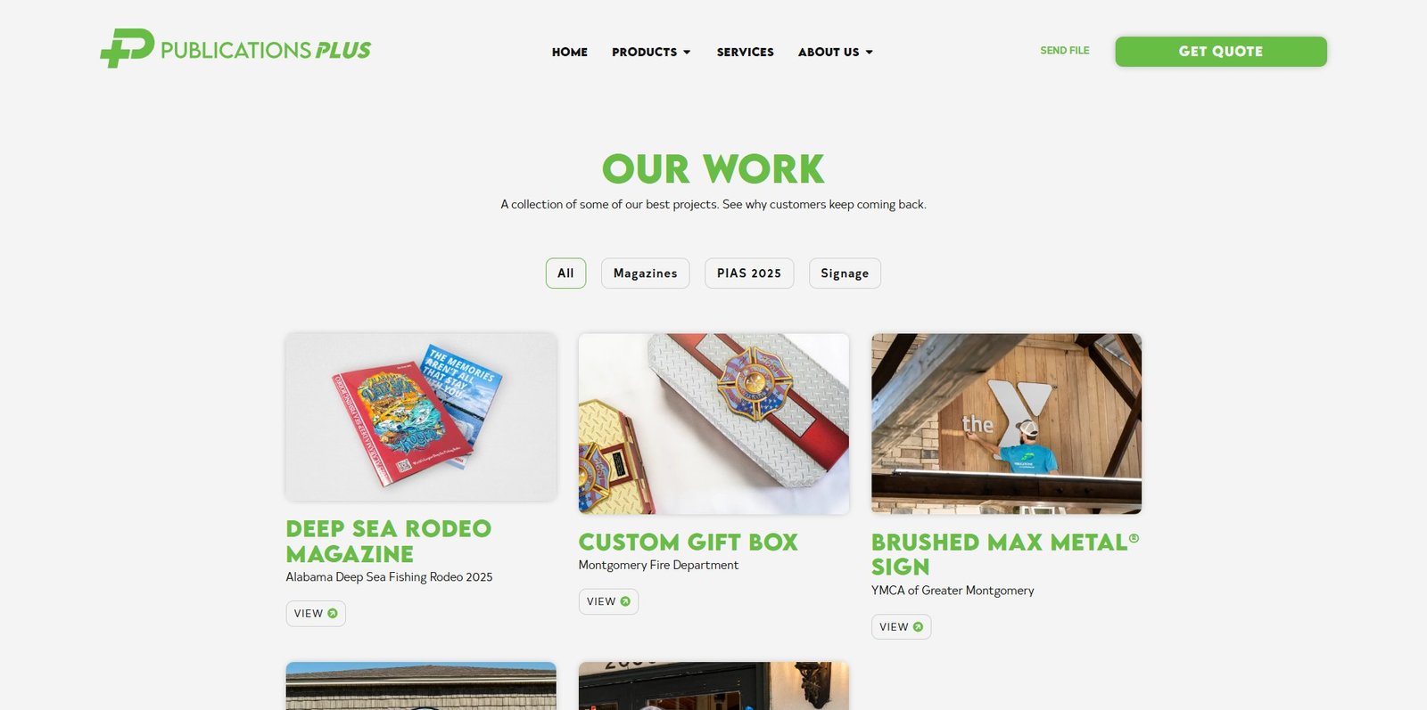 For Publications Plus, I created a feature called “Our Work Posts”. This section showcases some of their best projects and is designed to be simple yet flexible. Each post includes three sections: a main thumbnail image, an image gallery, and a brief description of the work. This approach makes it easy to organize and display content while maintaining a professional, clean layout.