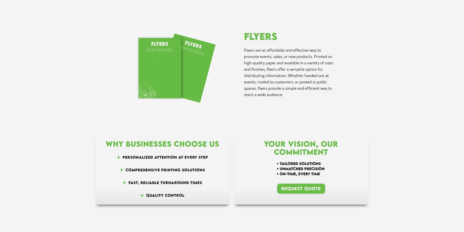 Customers can send print files directly through the website using a built-in transfer and quote form, no Dropbox, Google Drive, or WeTransfer needed.